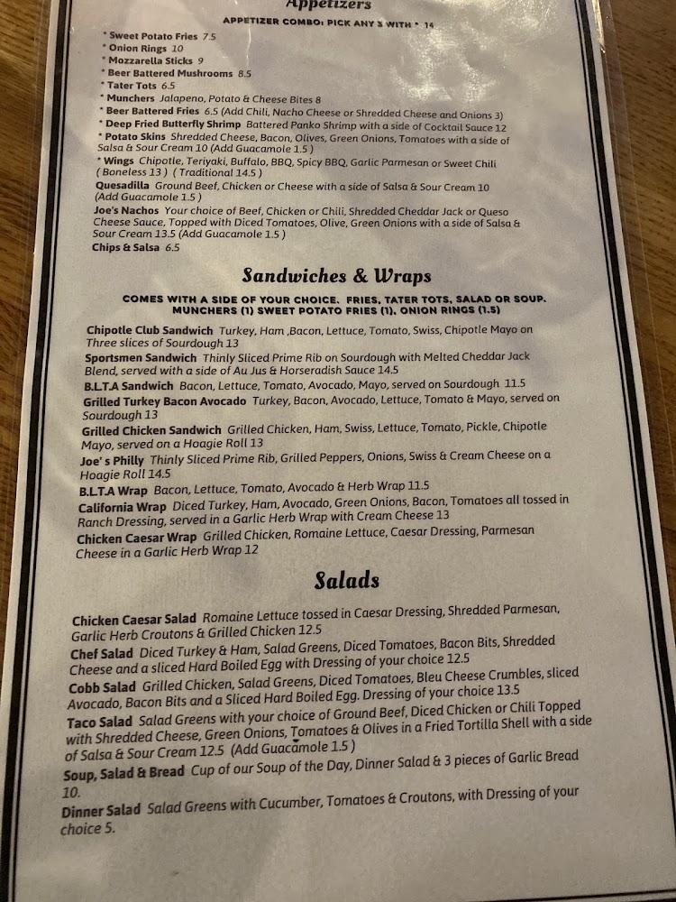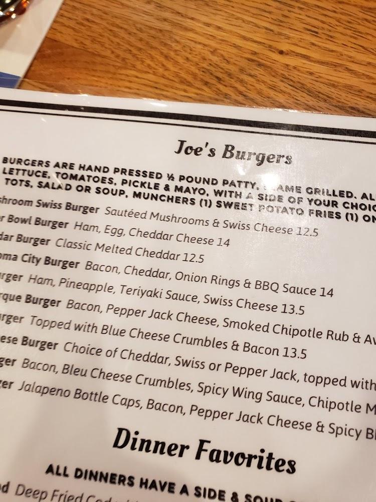 Dinner favorites include comforting options like the Beer Battered Cod and Chicken Fettuccine. Guests can also explore personal flatbread pizzas, with toppings varying from BBQ Chicken to Italian classics. The wine list offers a selection of reds and whites, perfect for pairing with meals. Whether opting for a light salad or hearty dinner, Joe's ensures a memorable dining experience with every visit.